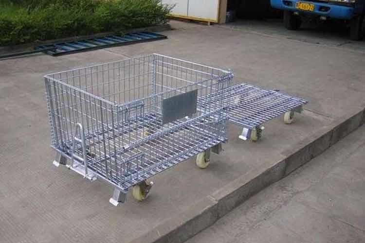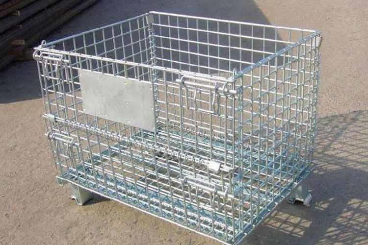 主要原材料是高線拉成的鋼絲,一般絲徑是5mm,6mm,6.4mm。網(wǎng)片焊接的網(wǎng)目間距一般為50×100,100×100,50×50。倉(cāng)儲(chǔ)籠底部采用U型鋼焊接而成,U型鋼是冷軋帶鋼軋機(jī)軋制而成,底部四角采用沖壓件一次沖制而成。鐵絲籠采用Q195高線作為原材料,經(jīng)冷拔成型材。再通過(guò)碰焊形成半成品網(wǎng)片。在制作成網(wǎng)片后,可采用鍍鋅或噴塑進(jìn)行表面處理(鐵絲籠大多數(shù)采用鍍鋅處理),表面處理完畢后就可以進(jìn)行組裝,即可制作成成品。